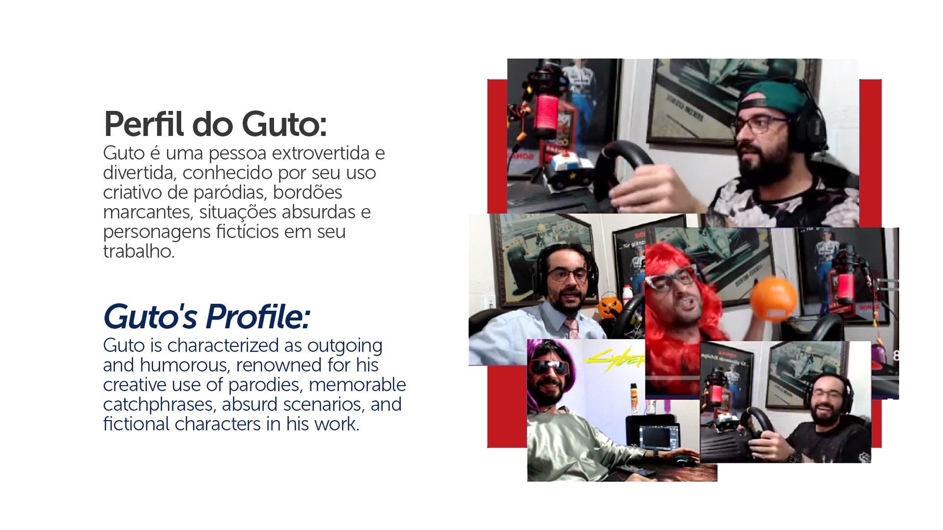 Guto was an outgoing guy, talked a lot, dressed up, and had a universe of references and catchphrases he used in his streams. His focus wasn't on being the best race car driver, but on entertaining his audience.