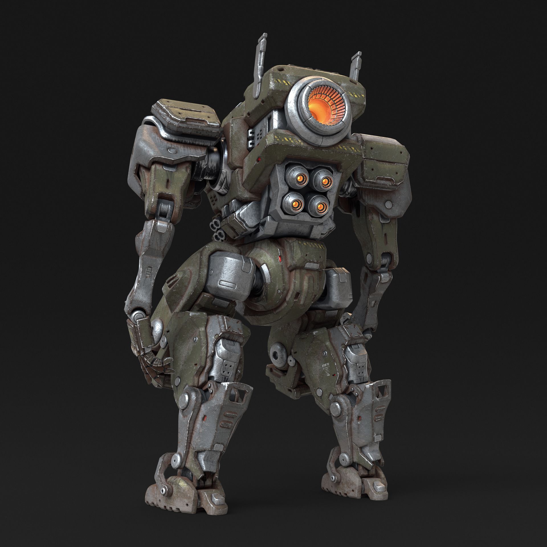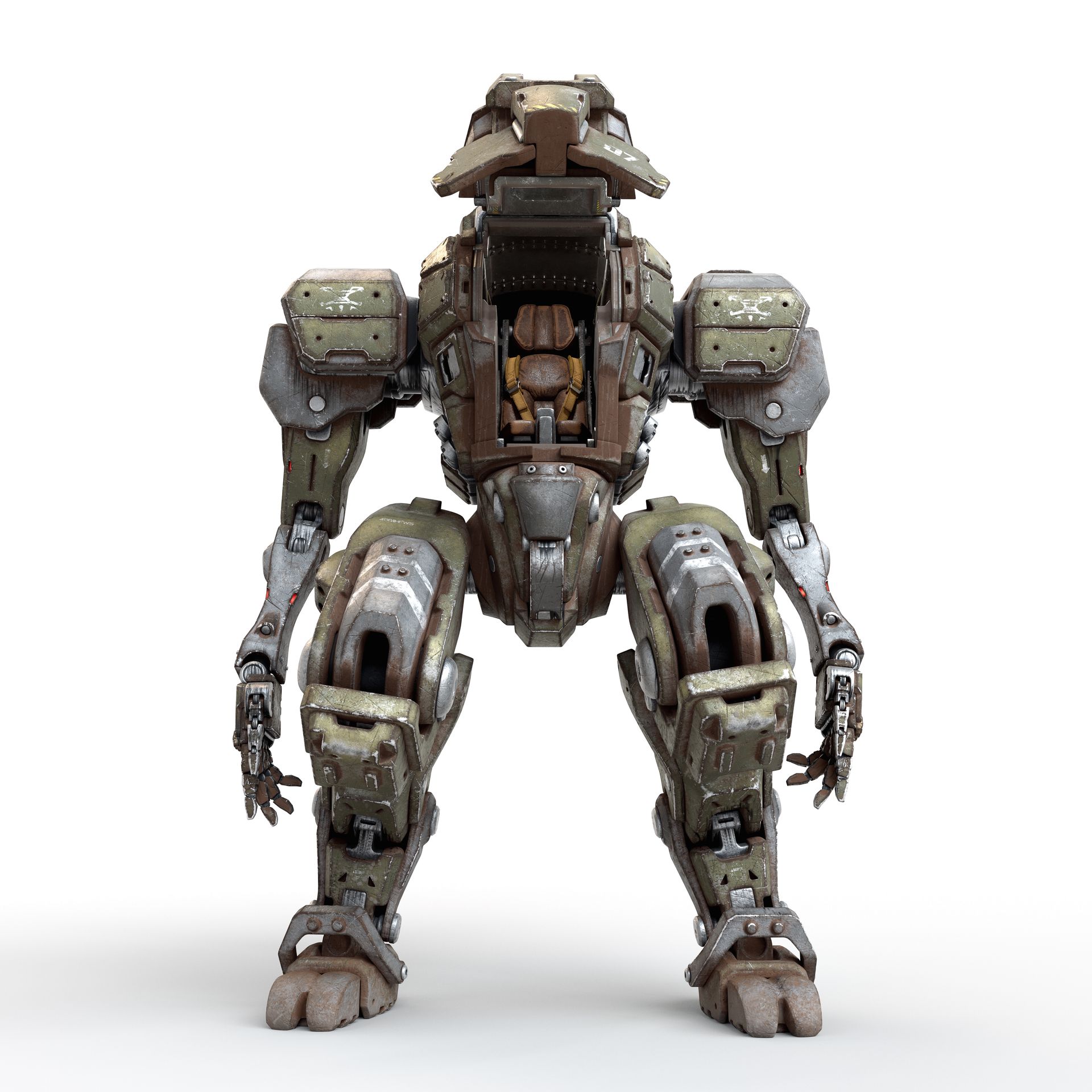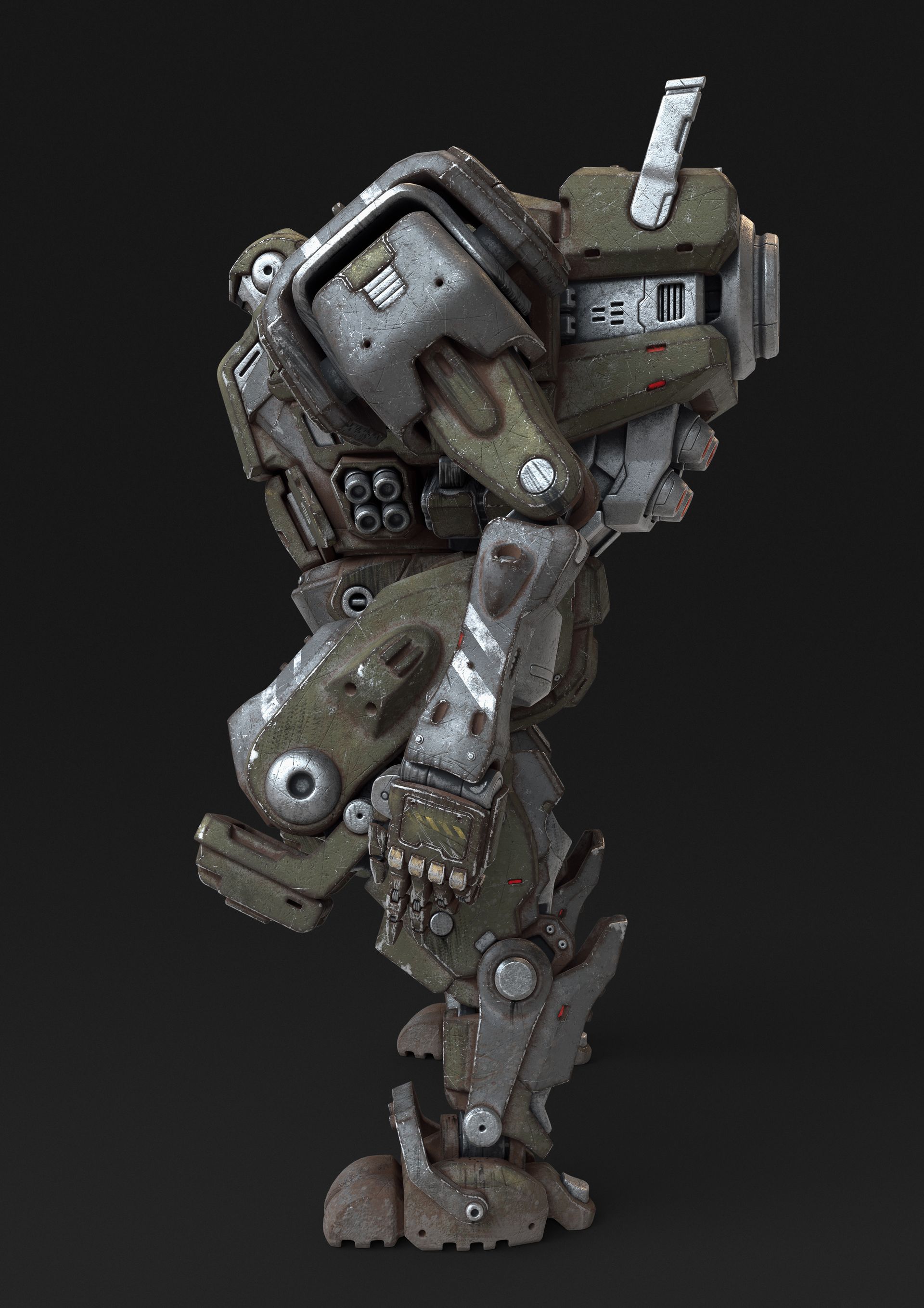 Due to limited 3D experience, alternative solutions were necessary to create the desired effect. The main challenge was finding rendered images of the same mech in different camera angles, all compatible with the project's vision. After an extensive search through stock image websites, i found an artist who had rendered multiple camera angles of a robot that perfectly aligned with the project's requirements.